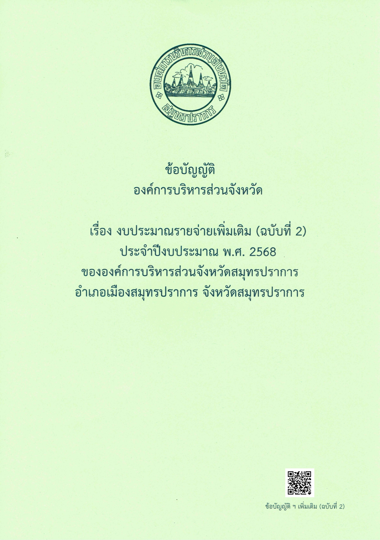 ประกาศข้อบัญญัติงบประมาณรายจ่ายเพิ่มเติม(ฉบับที่2)ประจำปีงบประมาณ พ.ศ.2568Published on Tuesday, 30 September 2025 08:29 | Written by supanna | | Print | | Email | Hits: 290 Comments
