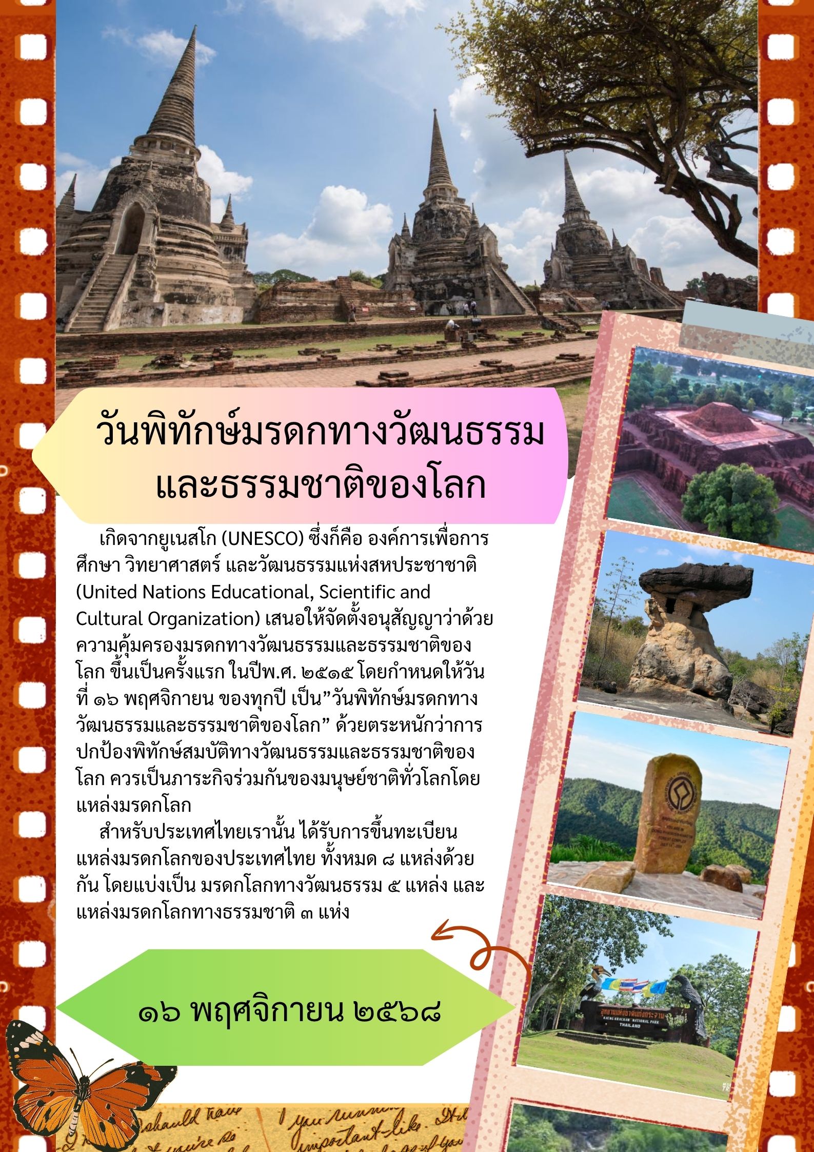 ข้อมูลวันพิทักษ์มรดกทางวัฒนธรรมและธรรมชาติของโลกPublished on Monday, 17 November 2025 01:53 | Written by wachiraporn | | Print | | Email | Hits: 270 Commentsข้อมูลวันพิทักษ์มรดกทางวัฒนธรรมและธรรมชาติของโลก