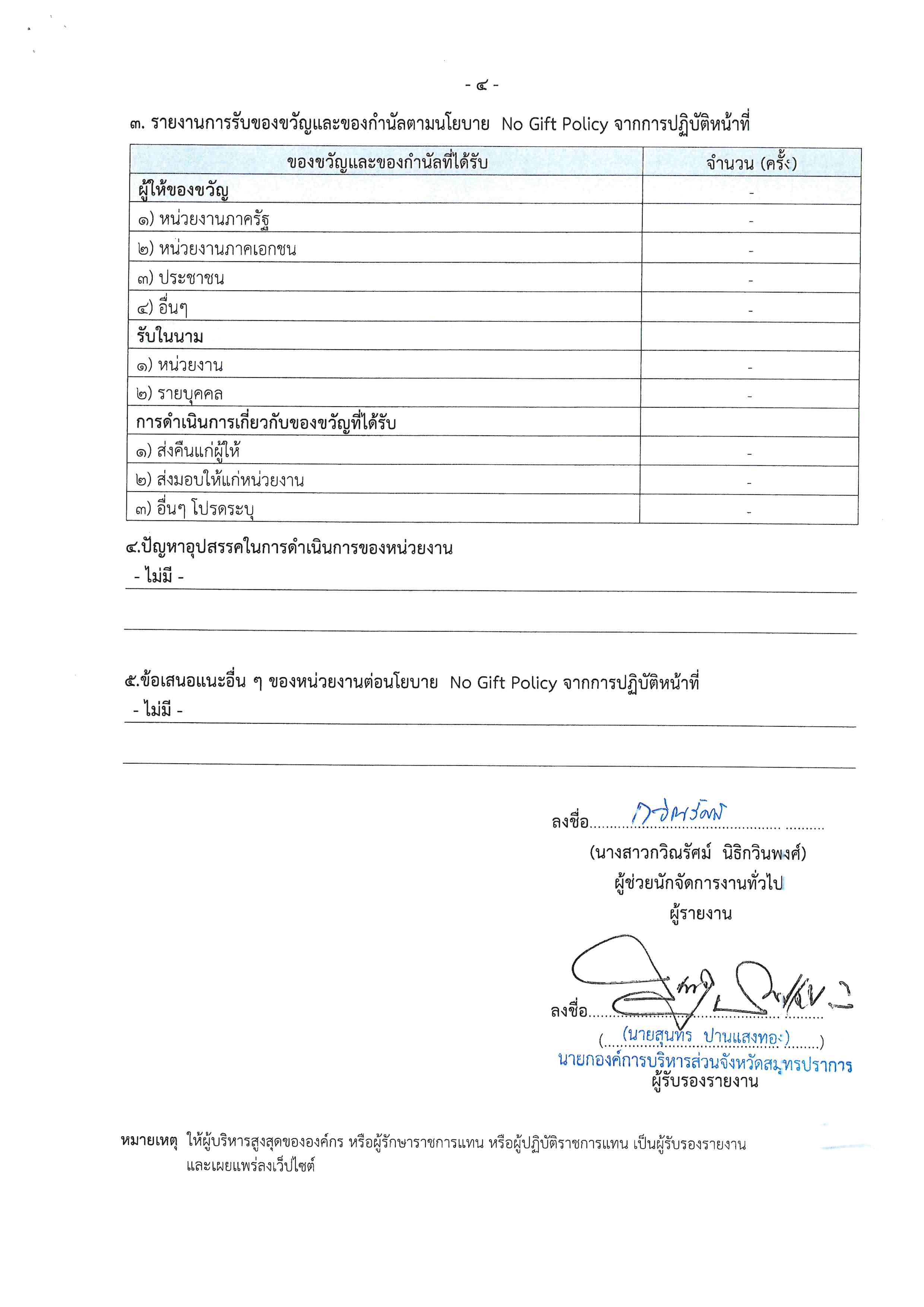 แบบรายงานการรับของขวัญและของกำนัล ตามนโยบาย ( No Gift Policy) จากการปฏิบัติหน้าที่
