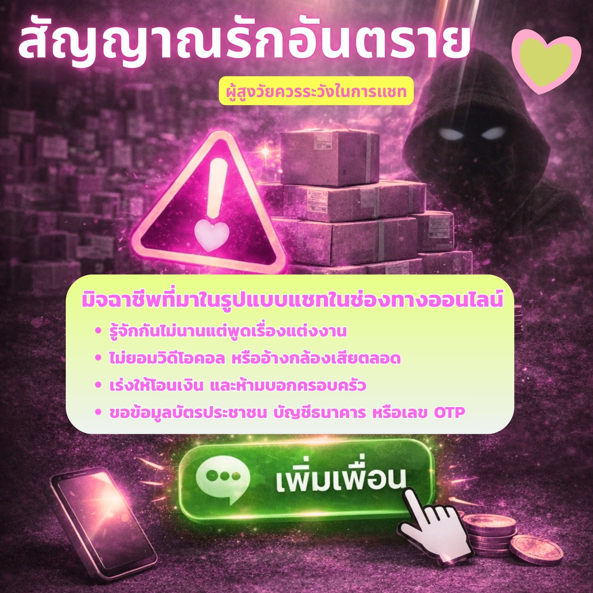 อย่าหลงเชื่อคนแปลกหน้าในโลกออนไลน์ ป้องกันตกเป็นเหยื่อมิจฉาชีพ