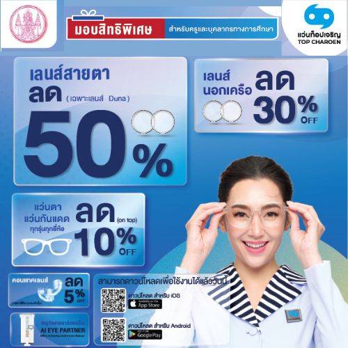 แว่นท็อปเจริญจัดสวัสดิการให้แก่ครูและบุคลากรทางการศึกษา โดยมอบส่วนลดพิเศษรวมถึงสิทธิประโยชน์ ดังนี้