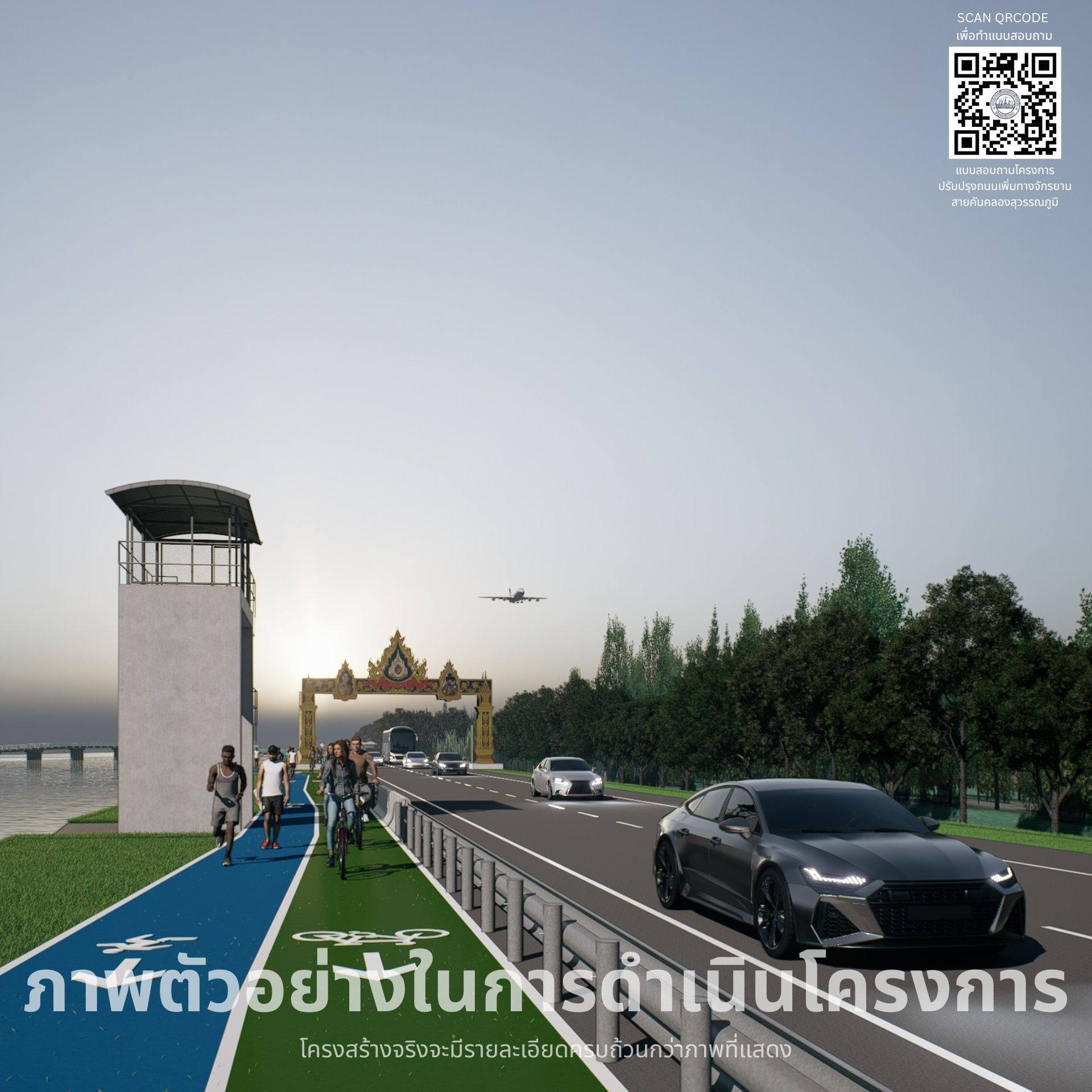 องค์การบริหารส่วนจังหวัดสมุทรปราการ โดยกองช่าง ได้ดำเนินการลงพื้นที่เพื่อรับฟังความคิดเห็นจากประชาชนในพื้นที่ช่วงกิโลเมตรที่ 3+100 ถึงกิโลเมตรที่ 11+650 ในโครงการปรับปรุงถนนเพิ่มทางจักรยานสายถนนคันคลองระบายน้ำสุวรรณภูมิ