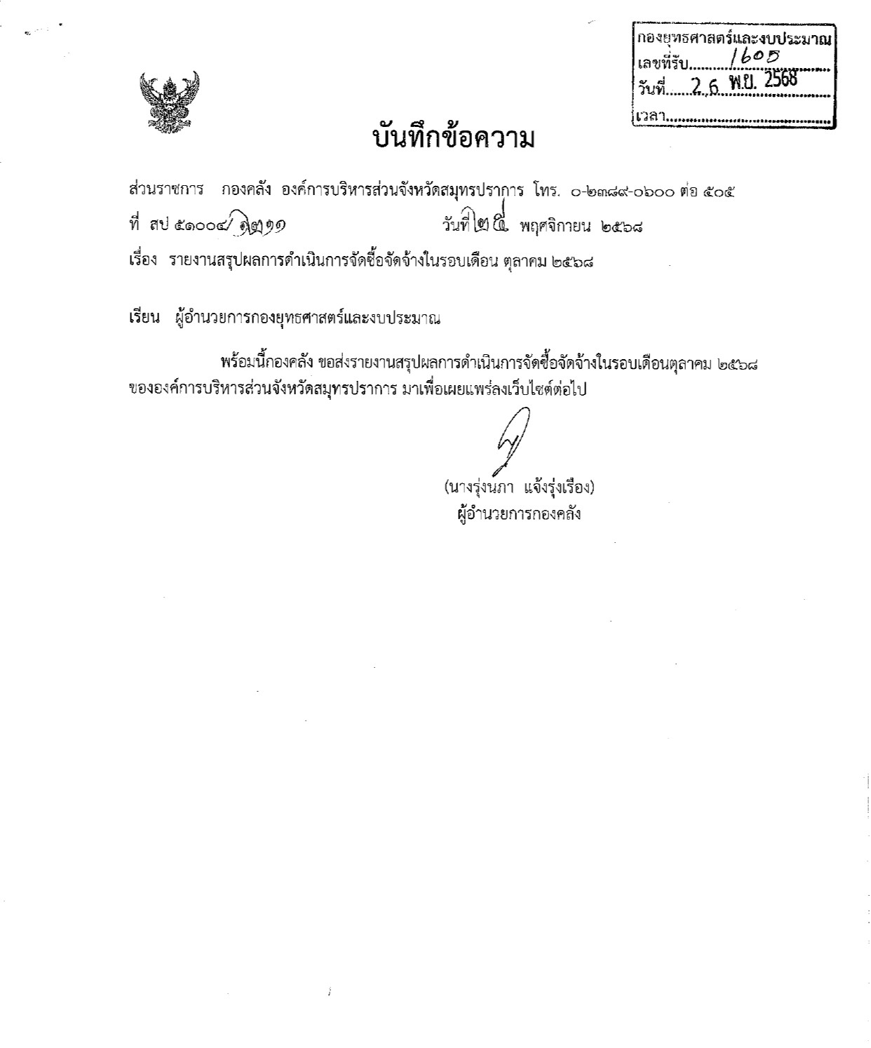 รายงานสรุปผลการจัดซื้อจัดจ้างประจำเดือนตุลาคมพ.ศ.2568Published on Friday, 28 November 2025 04:39 | Written by wachiraporn | | Print | | Email | Hits: 110 Commentsรายงานสรุปผลการจัดซื้อจัดจ้างประจำเดือนตุลาคมพ.ศ.2568
