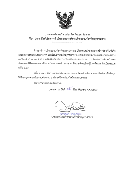 ประกาศรายงานการติดตามและประเมินผลโครงการเงินอุดหนุนปีงบประมาณ พ.ศ. 2562 โครงการก่อสร้างพิพิธภัณฑ์เพื่อการศึกษาจังหวัดสมุทรปราการ และ โรงเรียนสตรีสมุทรปราการPublished on Tuesday, 16 September 2025 06:48 | Written by supanna | | Print | | Email | Hits: 180 Comments