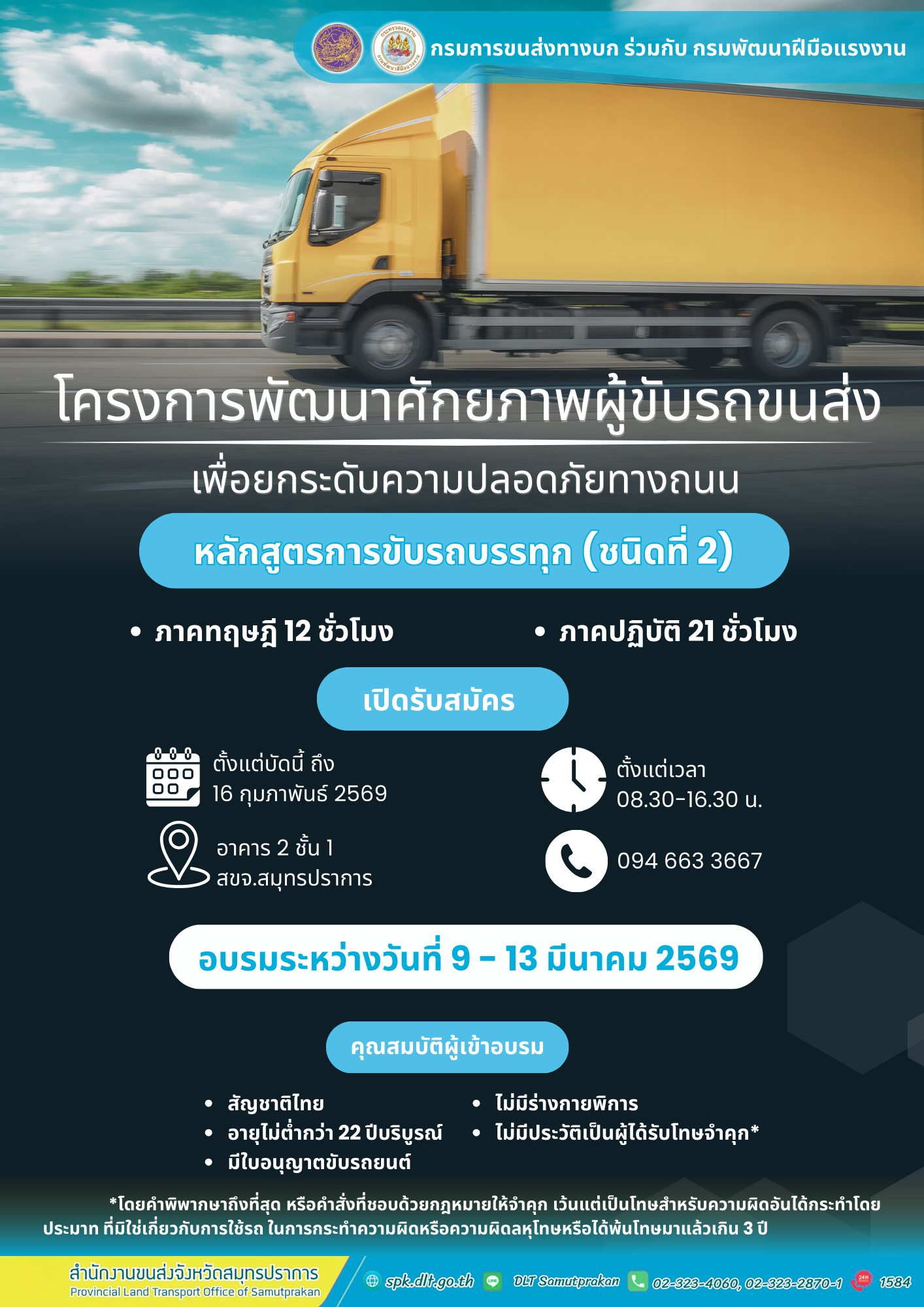 ประชาสัมพันธ์โครงการพัฒนาศักยภาพผู้ขับรถขนส่งเพื่อยกระดับความปลอดภัยทางถนนPublished on Monday, 02 February 2026 06:51 | Written by wachiraporn | | Print | | Email | Hits: 410 Comments